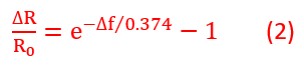 The relative change in R (ΔR/R), equ. (2), in the double-slit experiment I reviewed in 2012, shows an exponential decay with frequency shifts Δf between 0 and 1 wavenumbers. At Δf = 1 w/n, R drops by ~93%. This sensitivity underscores how even a small, deliberate shift in the FFT can produce the illusion of a dramatic experimental effect.